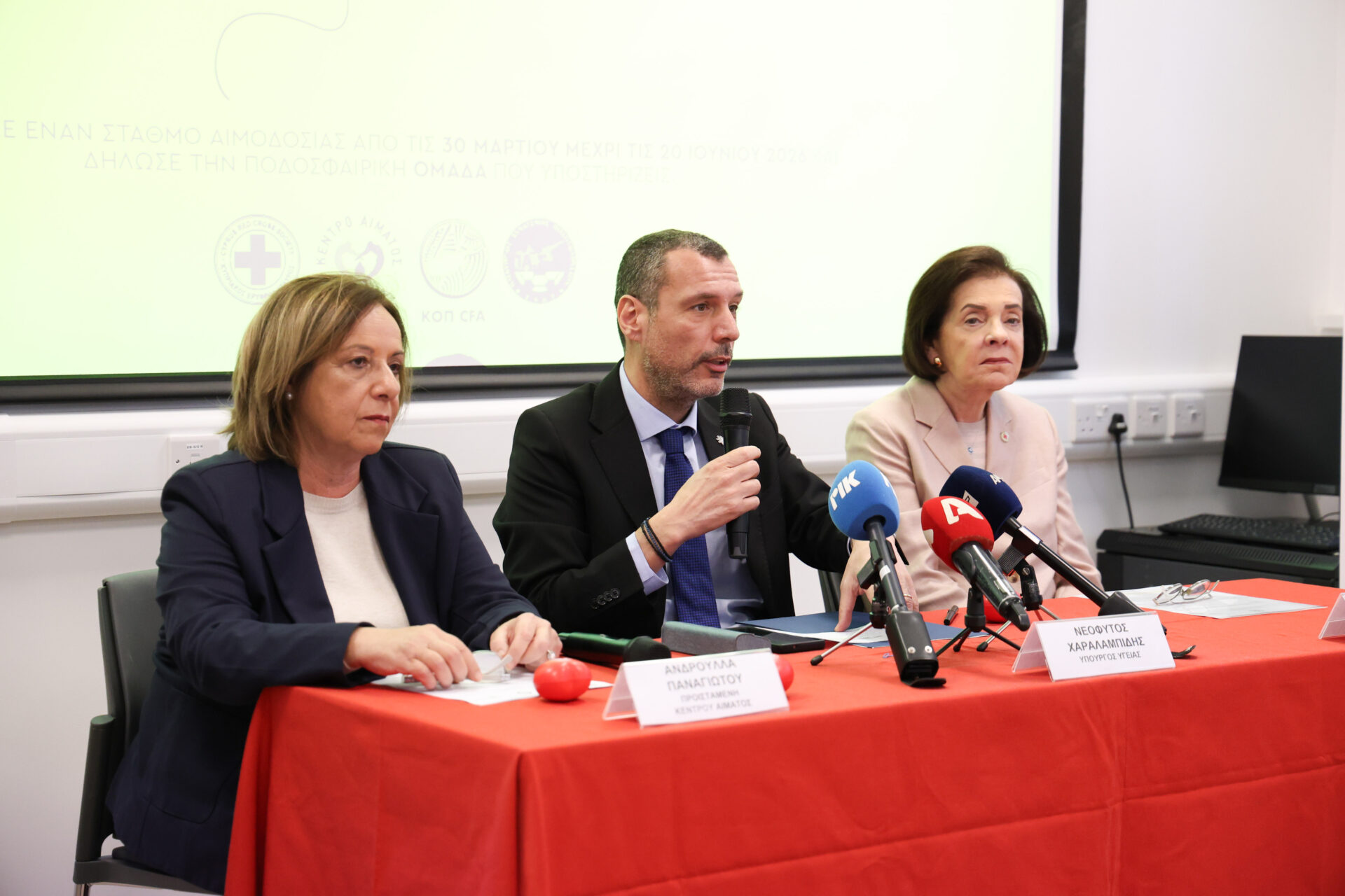 Με στόχο την ενίσχυση των αποθεμάτων αίματος και την καλλιέργεια κουλτούρας τακτικής αιμοδοσίας από το κοινό, ο Κυπριακός Ερυθρός Σταυρός σε συνεργασία με το Κέντρο Αίματος, την Κυπριακή Ομοσπονδία Ποδοσφαίρου και τον Παγκύπριο Σύνδεσμο Ποδοσφαιριστών (ΠΑ.Σ.Π.) ανακοίνωσαν, σε συνέντευξη Τύπου την Δευτέρα 30 Μαρτίου 2026, την έναρξη της δράσης «Πρωτάθλημα Αίματος».