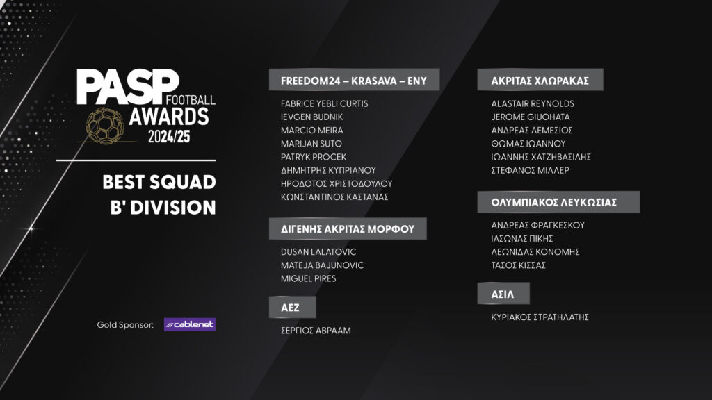 Η κορυφαία ενδεκάδα της Β’ Κατηγορίας ζωντανά στα «PASP FOOTBALL AWARDS 2024/25»!