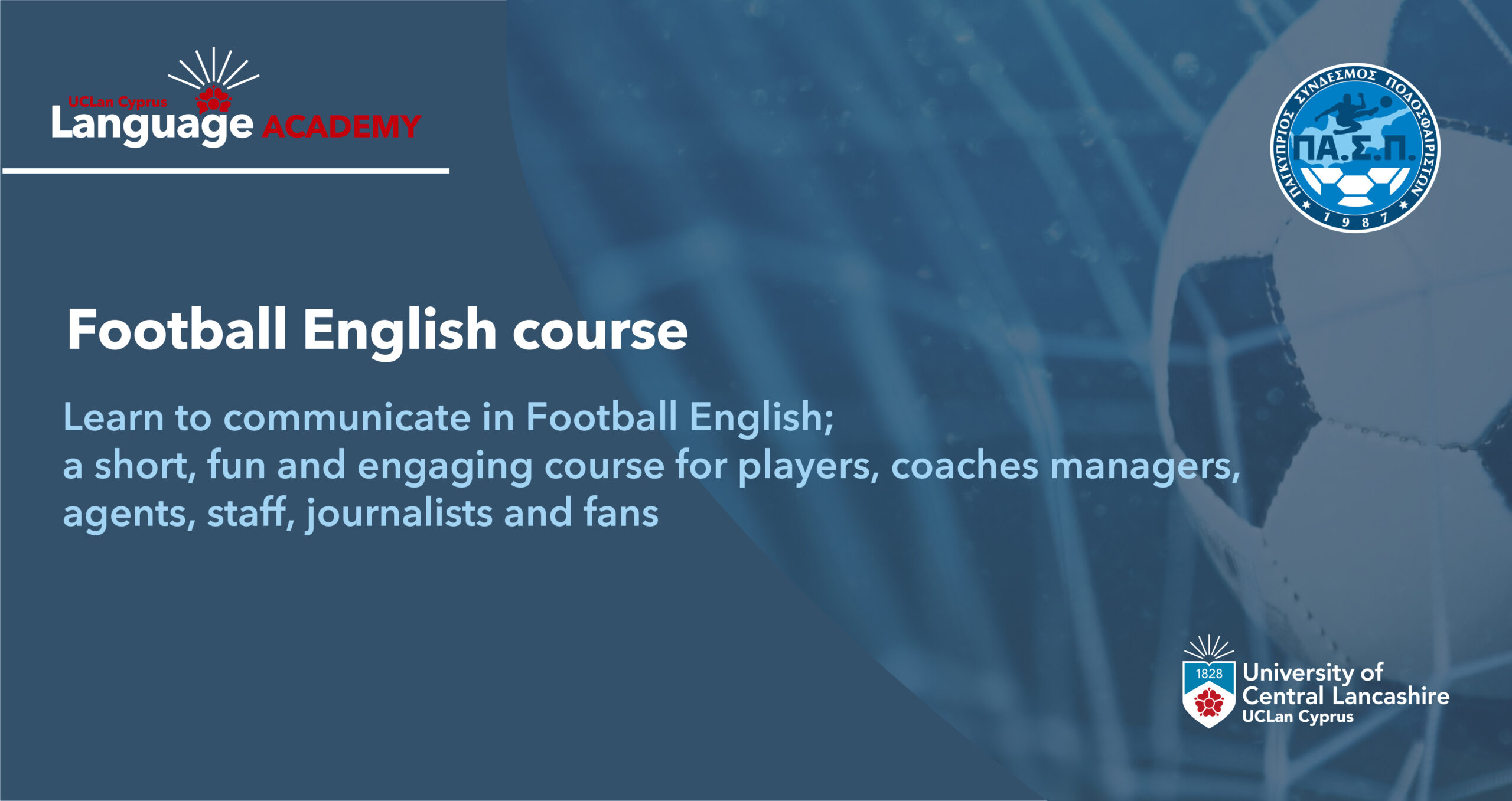 A quick, engaging and fun course for those who need to communicate in English: players, coaches, managers, agents, staff, journalists and fans.