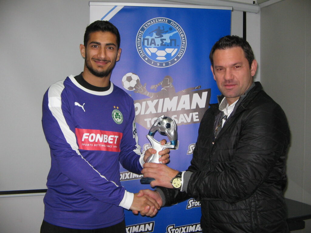 «Θα ήθελα να ευχαριστήσω τον κόσμο που με ψήφισε αλλά και τον ΠΑ.Σ.Π. για τη βράβευση. Ήταν μια όμορφη απόκρουση σε ένα τετ α τετ, αν και δυστυχώς δεν καταφέραμε να κερδίσουμε το συγκεκριμένο παιχνίδι με το ΑΠΟΕΛ και μάλιστα δέχθηκα και αδίκως την κόκκινη κάρτα. Η συνεχεία του πρωταθλήματος είναι δύσκολη και είμαι πανέτοιμος να αγωνιστώ όποτε με χρειάζεται η ομάδα μου!»