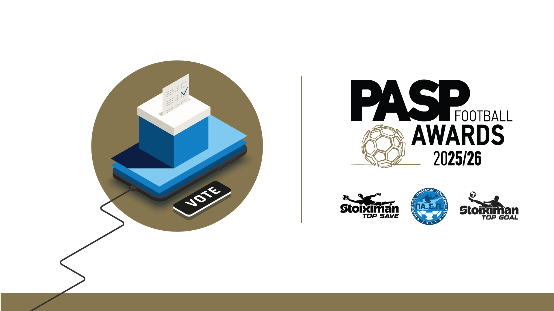 Ο Παγκύπριος Σύνδεσμος Ποδοσφαιριστών καλεί το φίλαθλο κοινό της Κύπρου να λάβει μέρος στη μεγάλη ψηφοφορία των «PASP FOOTBALL AWARDS 2025/26» για την ανάδειξη των κορυφαίων γκολ και κορυφαίων αποκρούσεων της κανονικής διάρκειας του Cyprus League by Stoiximan, όπως και του κορυφαίου Κύπριου νέου της σεζόν.